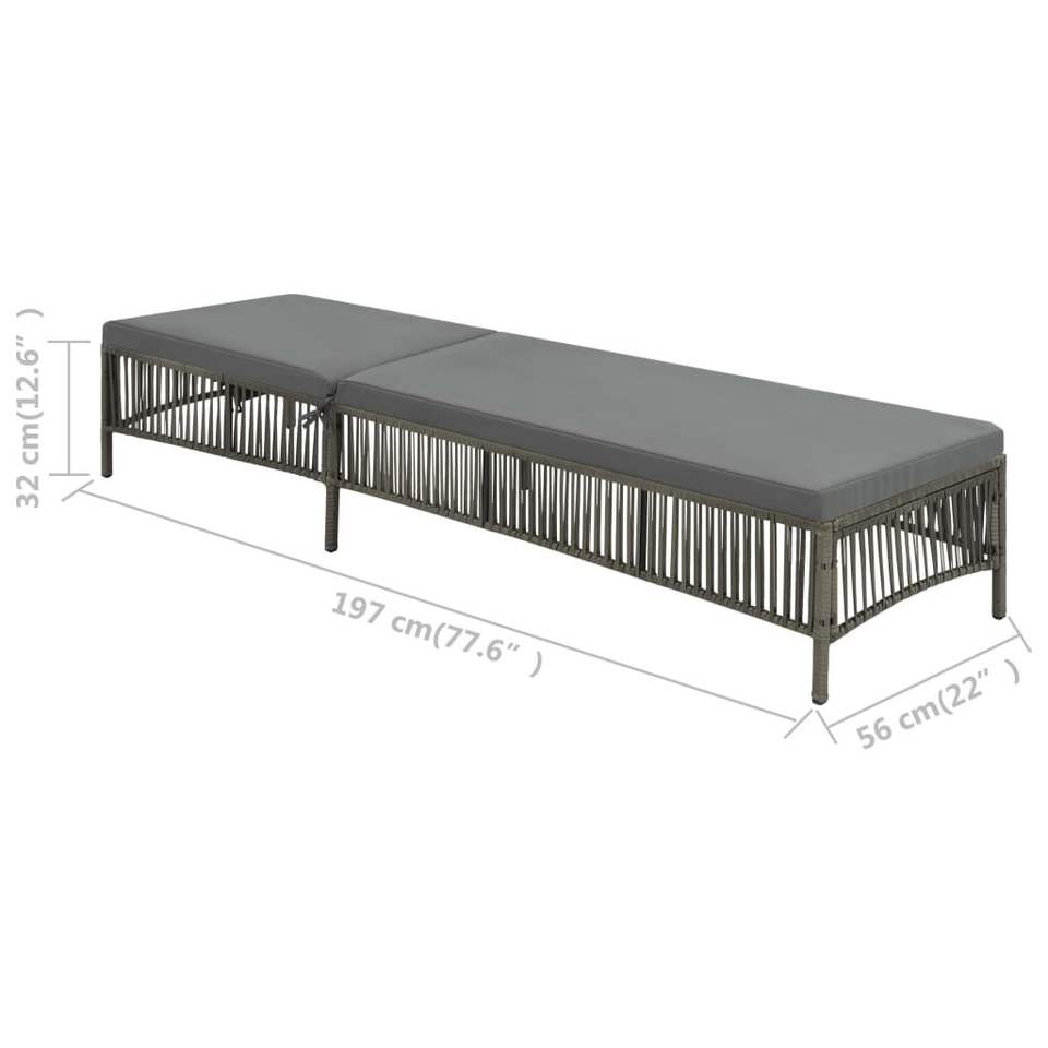 Lettino Prendisole Grande in Polyrattan Grigio e Acciaio Verniciato a Polvere, Prodotto Durevole in Poliestere