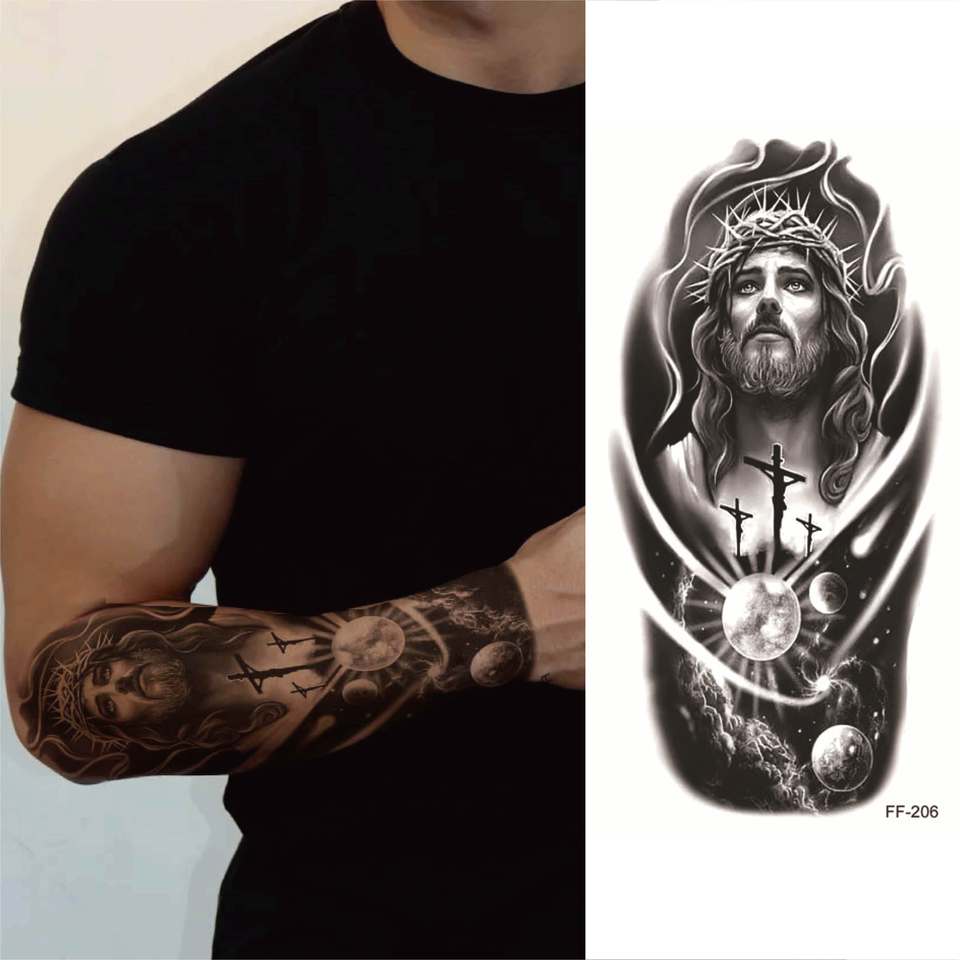 Tatuaggi Temporanei Grandi a Mezza Manica con Trasferimento ad Acqua, Sexy, per Uomini e Donne, per Avambraccio, Motivi Tribali, Lupo, Tigre, Leone, Gufo