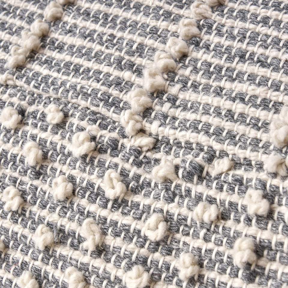 Large Handcrafted Faux Yarn Pouf Diamond Design in Ivory and Grey Elegant Pouf for Home Decor