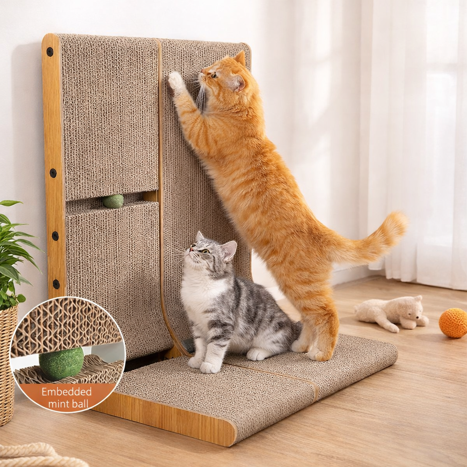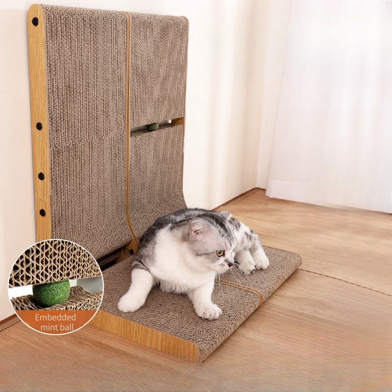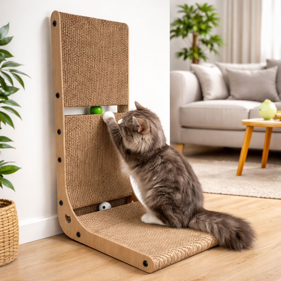 Tiragraffi per Gatti a L Grande in Cartone Ondulato, Protezione Murale per Gatti da Interno, con Palla Interattiva per Affilare le Unghie