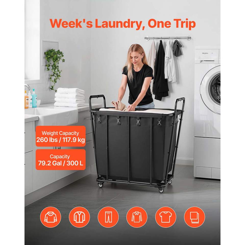 Carrello Multiuso Robusto con Grande Capacità di Carico 260 LBS, Rivestimento Impermeabile e Ruote Girevoli per Lavanderia e Campeggio