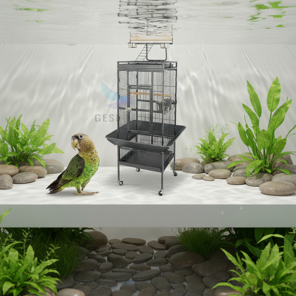 Grande Gabbia per Uccelli di Lusso Ecologica e Resistente con Struttura in Metallo per Pappagalli e Storni, con Attrezzatura di Intrattenimento Superiore, Modello Domestico