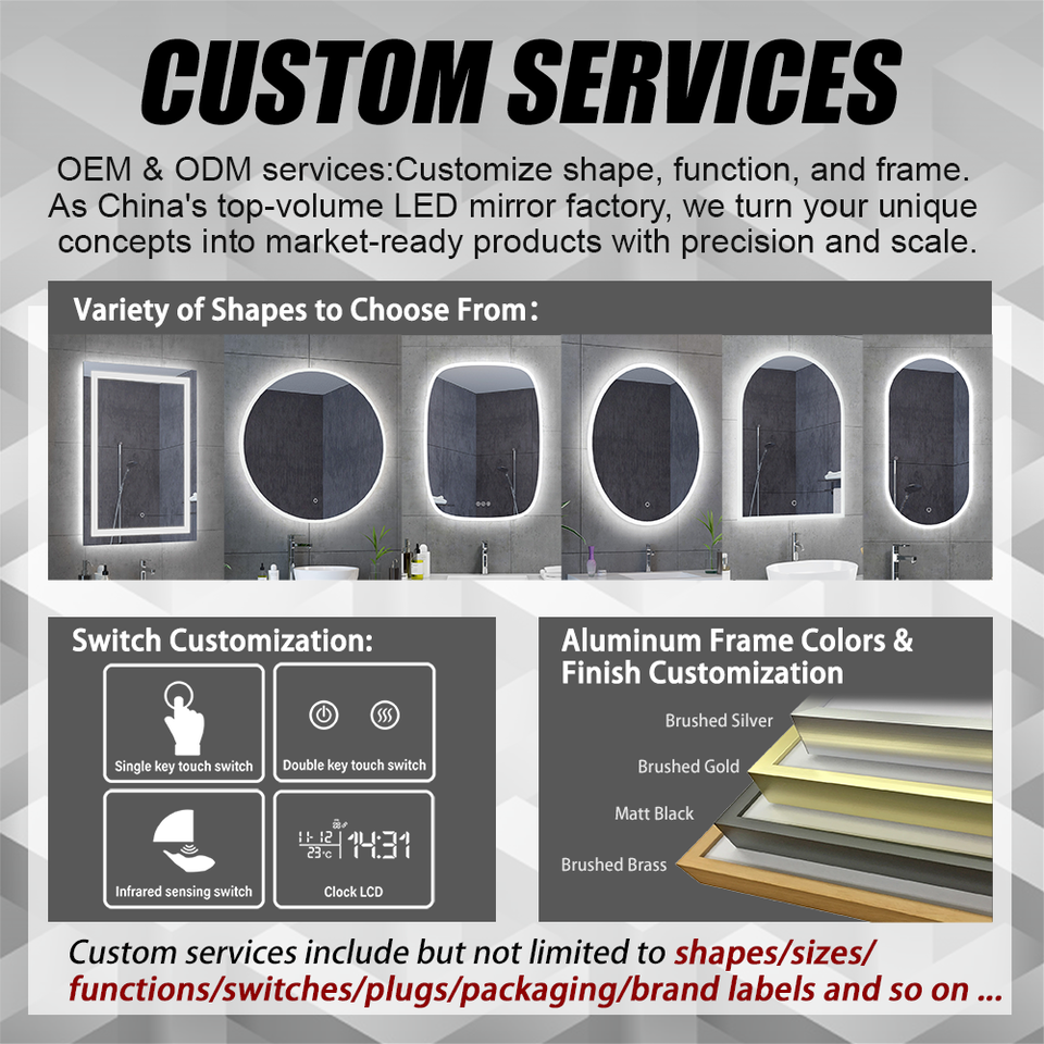 Specchio a LED intelligente da bagno senza telaio per grandi produttori Design moderno IP44 vetro Float Anti-Dumping tariffe retroilluminate luce da bagno
