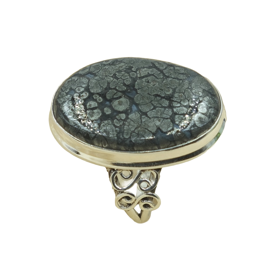 Anello Statement Grande in Argento Sterling 925 con Marcasite, Fatto a Mano, Vintage, con Cabochon Ovale, Gioiello di Design, Regalo Donna/Unisex