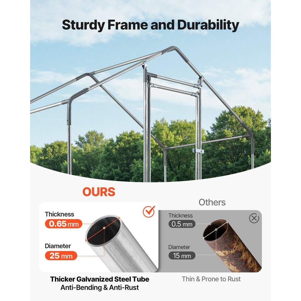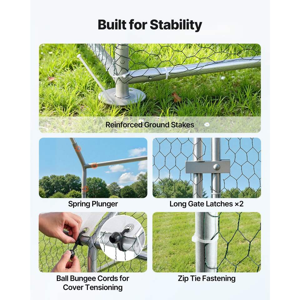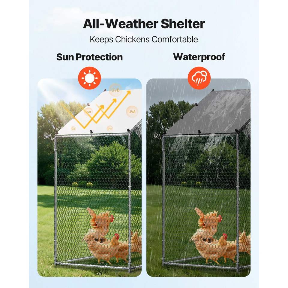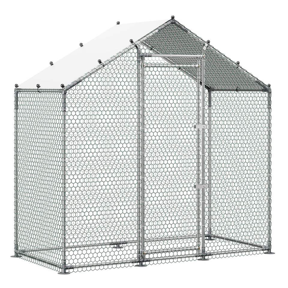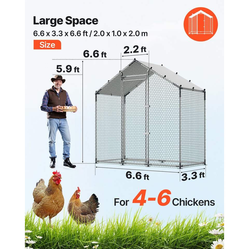 Grande Pollaio in Metallo 6.6 X 3.3 X 6.6 ft con Recinto per Polli, Copertura Impermeabile, Struttura Robusta e Tetto a Spiovente per Avicoli
