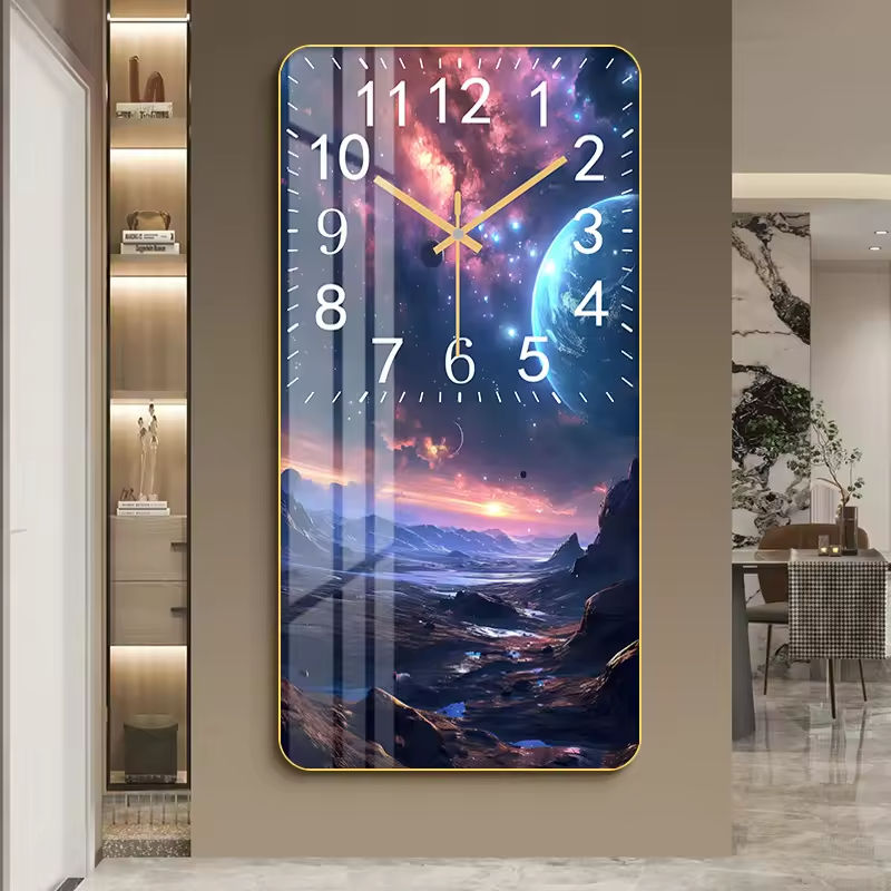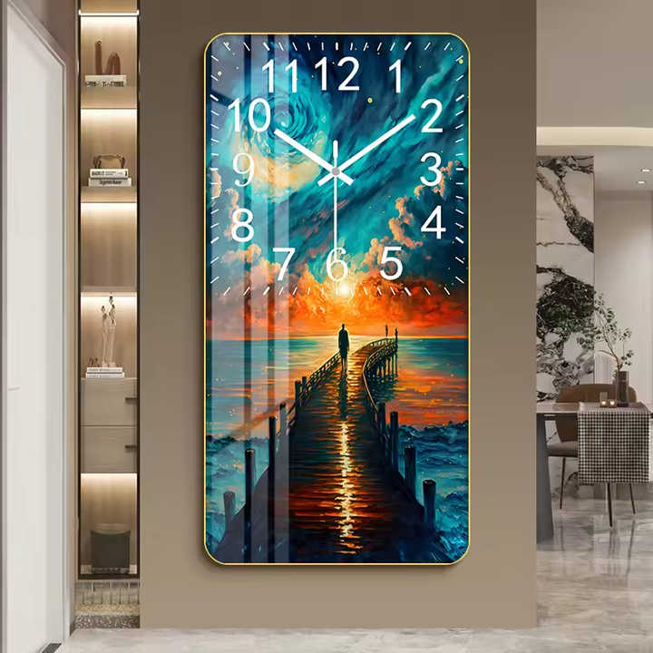Grande orologio rettangolare moderno pittura decorativa di cristallo porcellana moda per la casa per le pareti del soggiorno e del ristorante