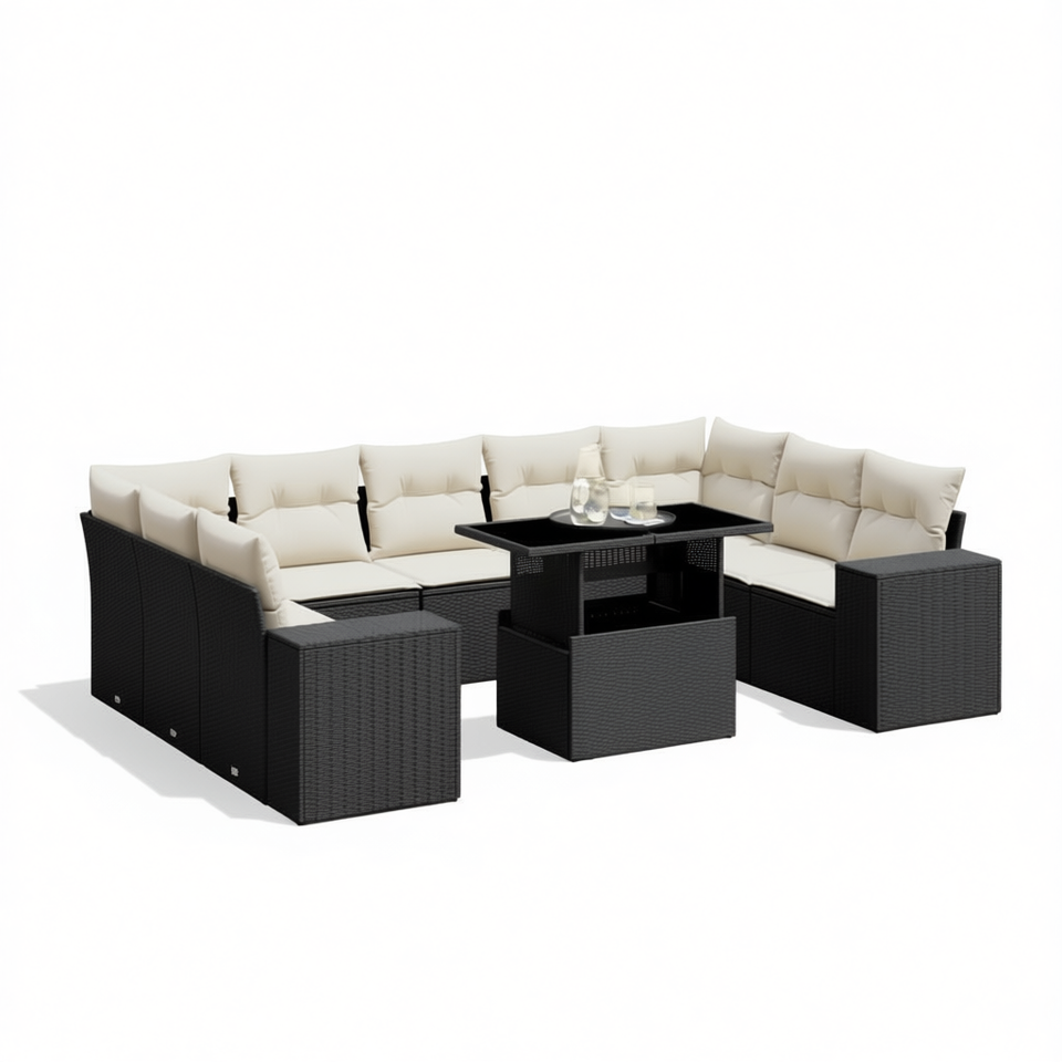 Set Divano da Giardino Modulare in Rattan PE Nero, Elegante Arredo Esterno Resistente ai Raggi UV con Cuscini in Schiuma ad Alta Densità