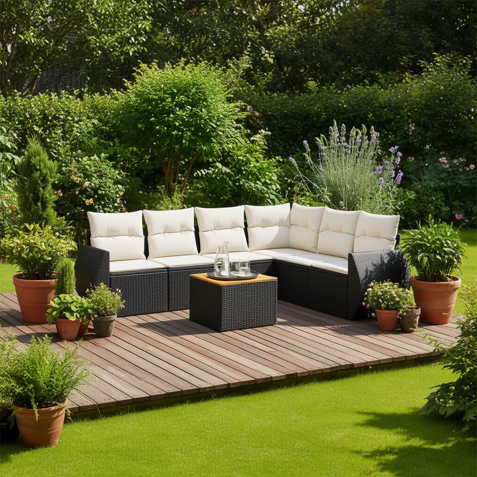 Set Divano da Giardino Modulare in Rattan PE Nero con Cuscini in Schiuma ad Alta Densità, Arredamento da Esterno dal Design Elegante