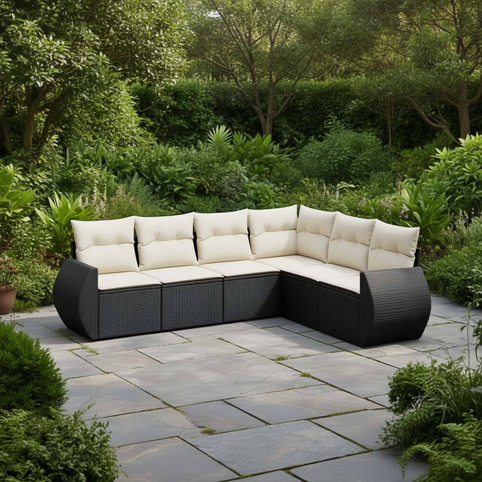 Elegant Modular Black Poly Rattan Garden Sofa Set Outdoor Furniture High-Density Foam Cushions