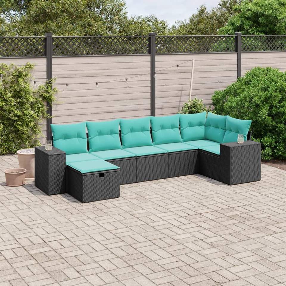 Grande Set di Divani Modulari da Giardino in Polyrattan Nero e Acciaio, Arredamento Moderno per Esterni