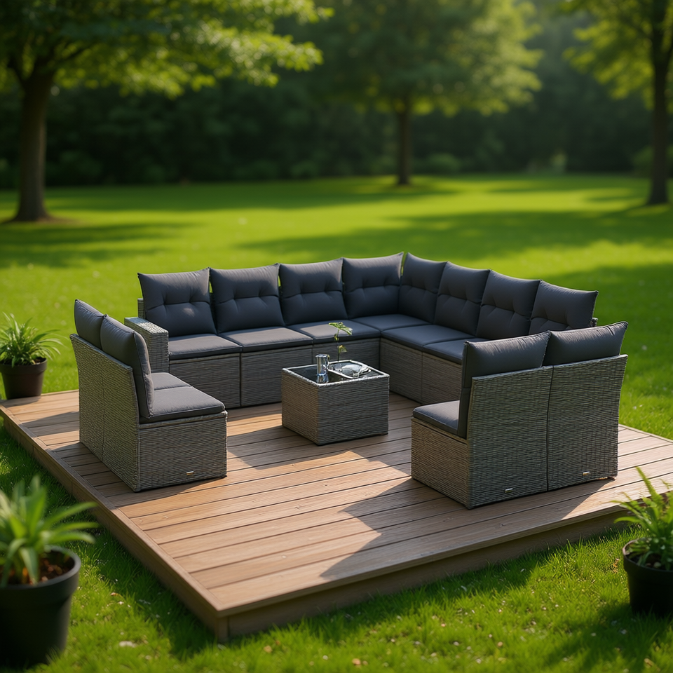 Set Divano da Giardino Modulare in Rattan PE Grigio, Arredamento da Esterno con 10+ Posti, Design Contemporaneo per Uso in Giardino