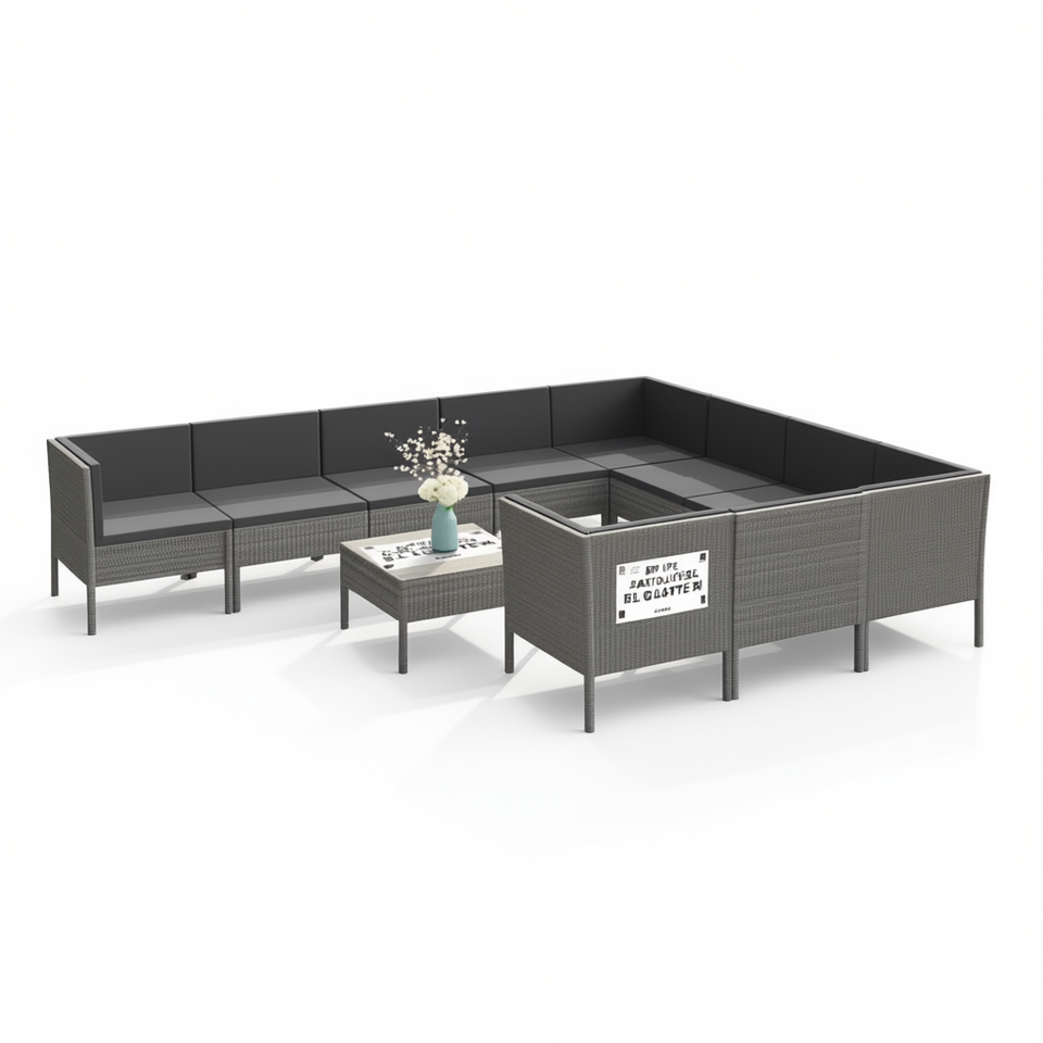Set Lounge da Giardino Modulare in Rattan PE Grigio, Arredamento da Esterno con Oltre 10 Posti, Design Contemporaneo