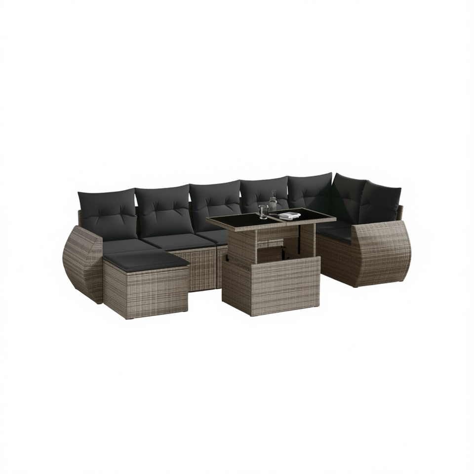 Set Divano da Giardino Modulare in Polyrattan Grigio 6 Posti Arredamento da Esterno Design Contemporaneo