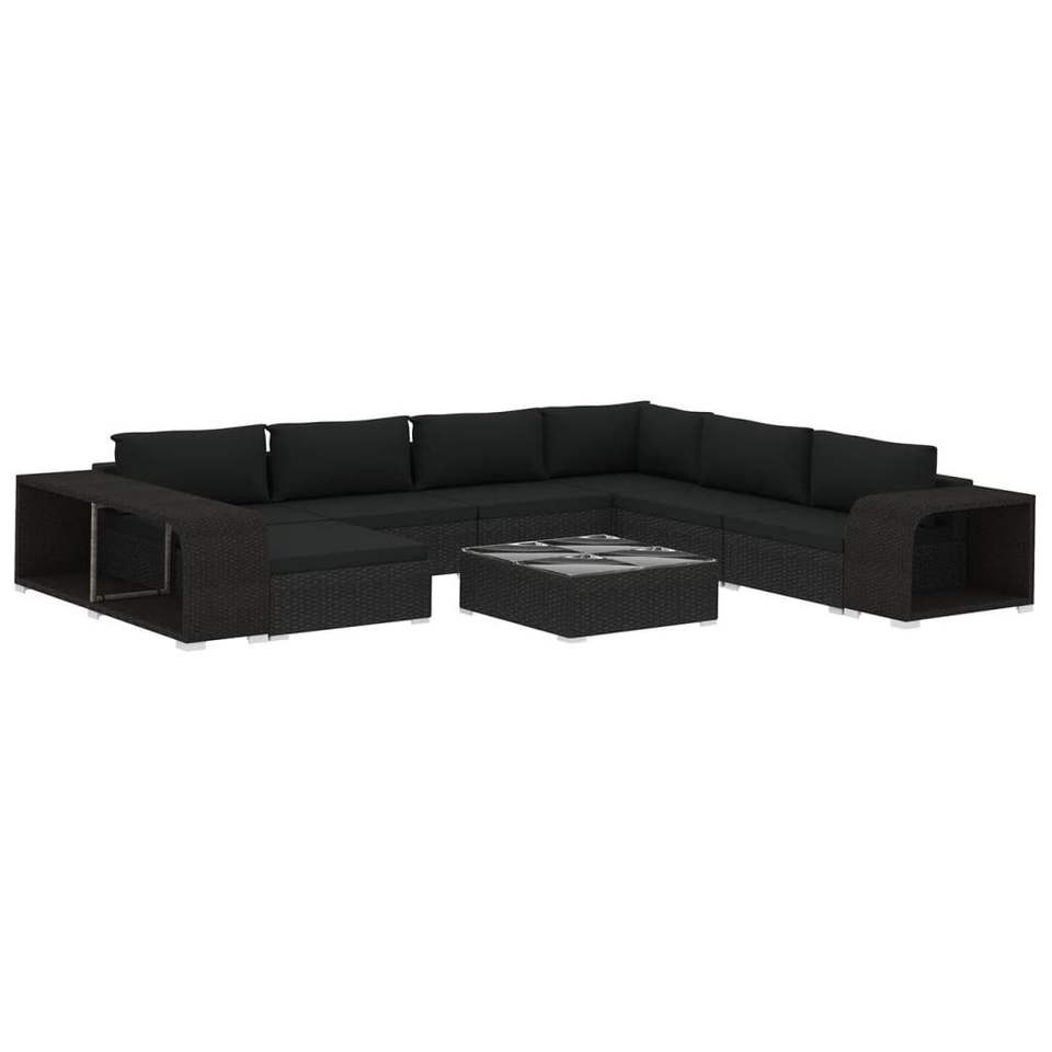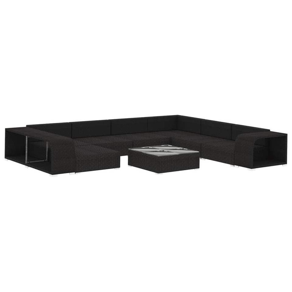Grande Divano Modulare da Esterno in Rattan PE Nero con Struttura in Acciaio Verniciato a Polvere
