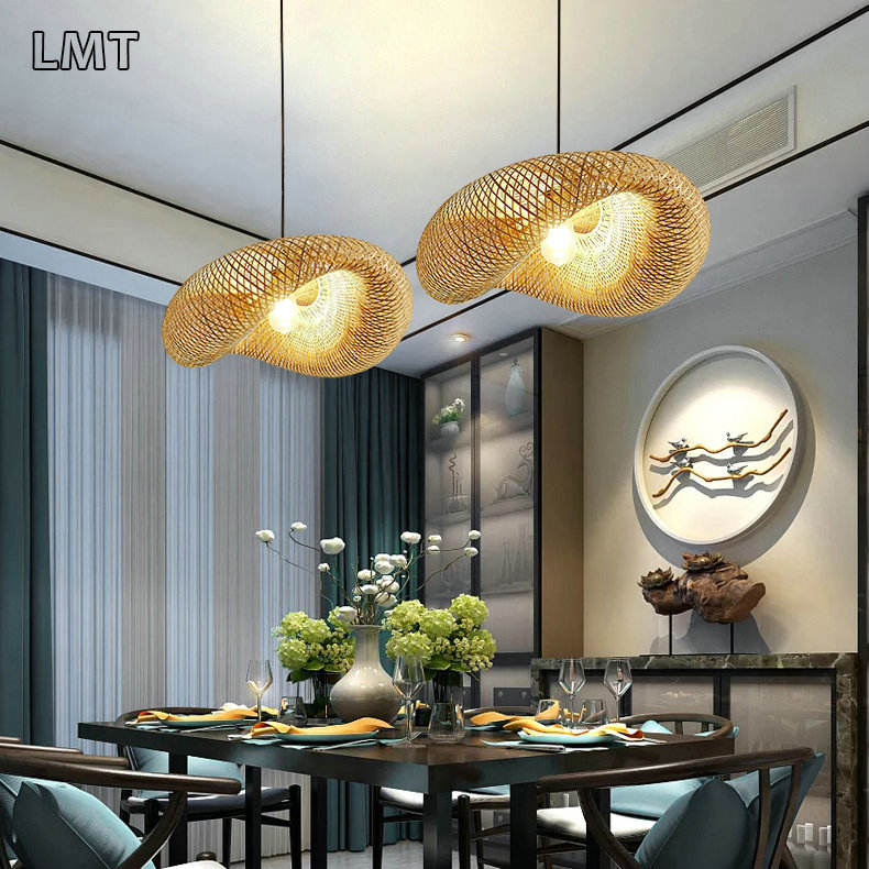 Sala da pranzo con luci a sospensione in bambù moderne Creative