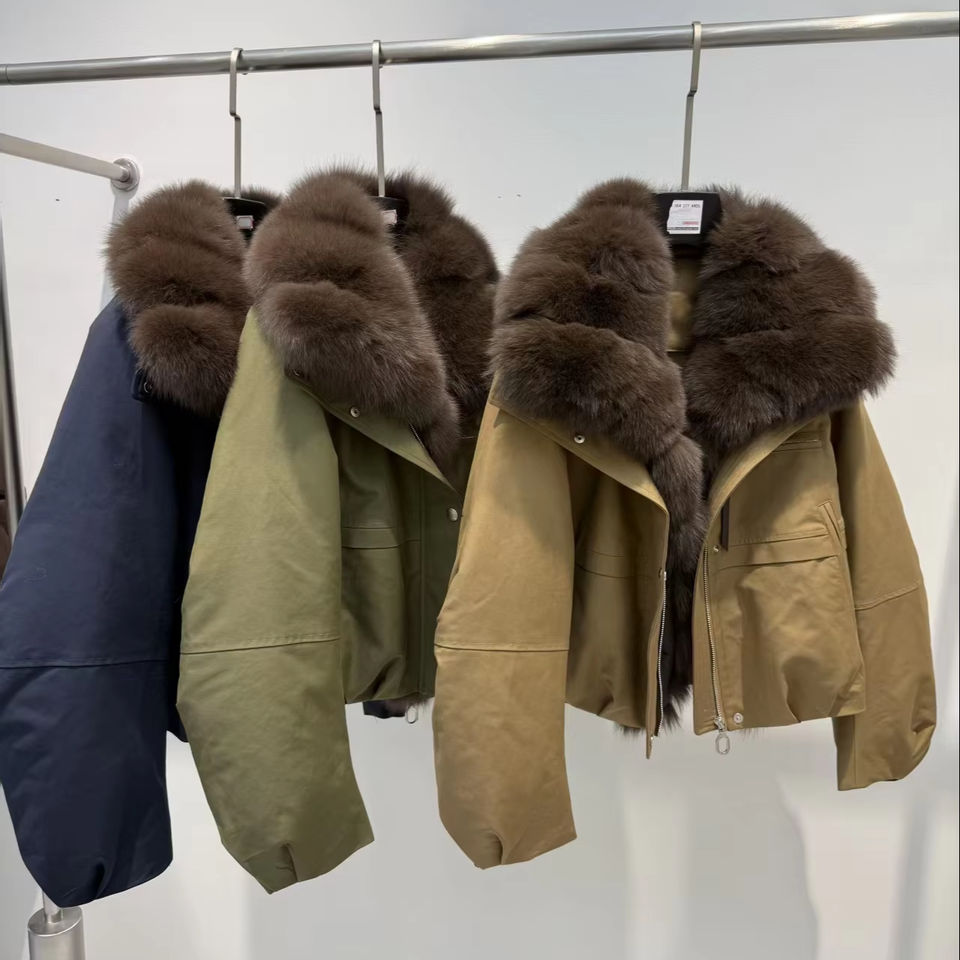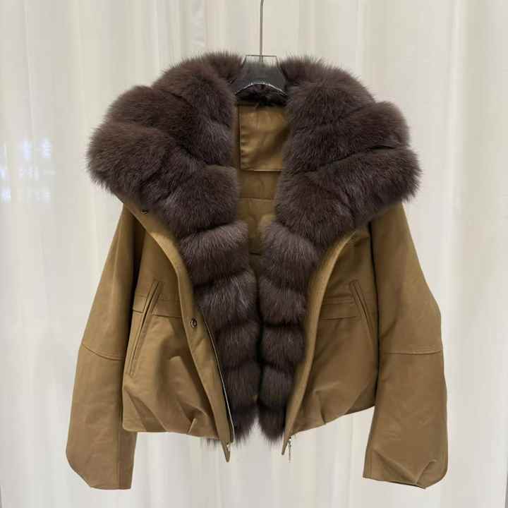 Giacca Invernale Corta da Donna, Impermeabile, Spessa, con Pelliccia di Volpe Importata