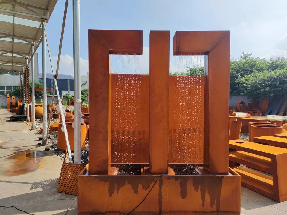 Fontana rettangolare da esterno in acciaio corten artisticoNome del prodotto