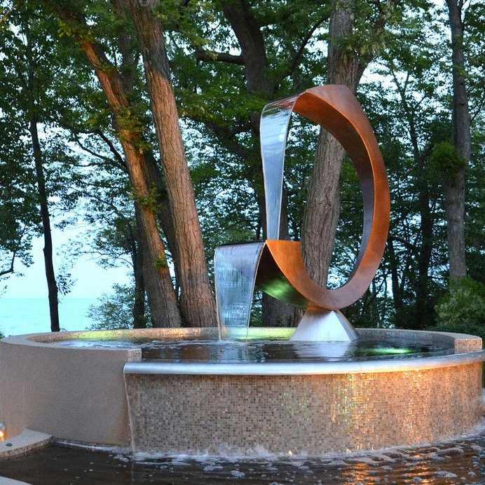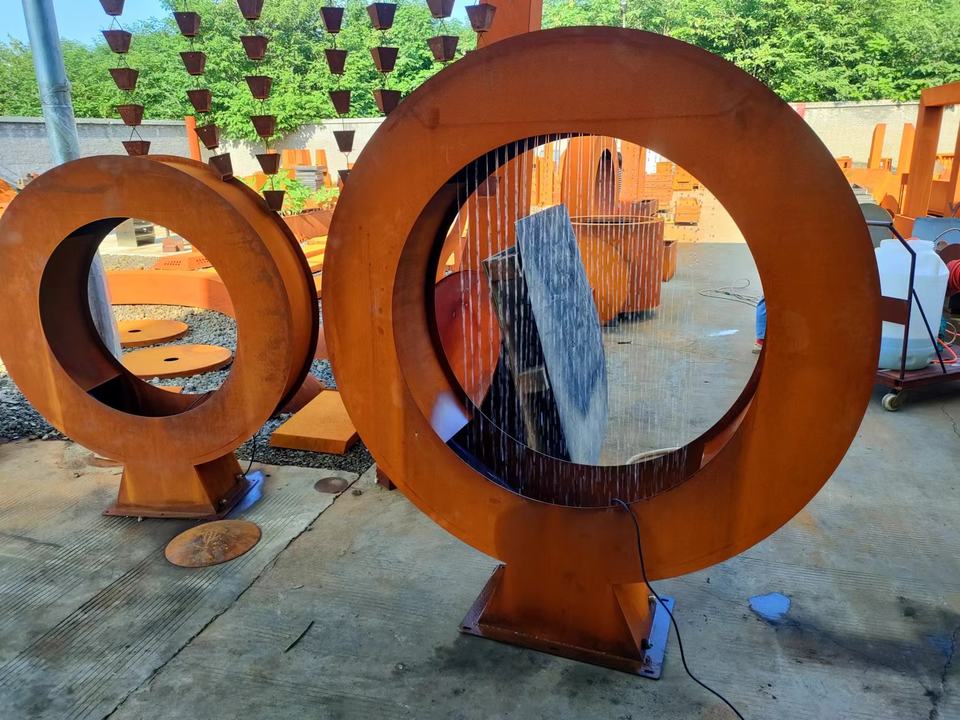 Grande Fontana d'Acqua da Esterno in Acciaio Corten per Arte Paesaggistica