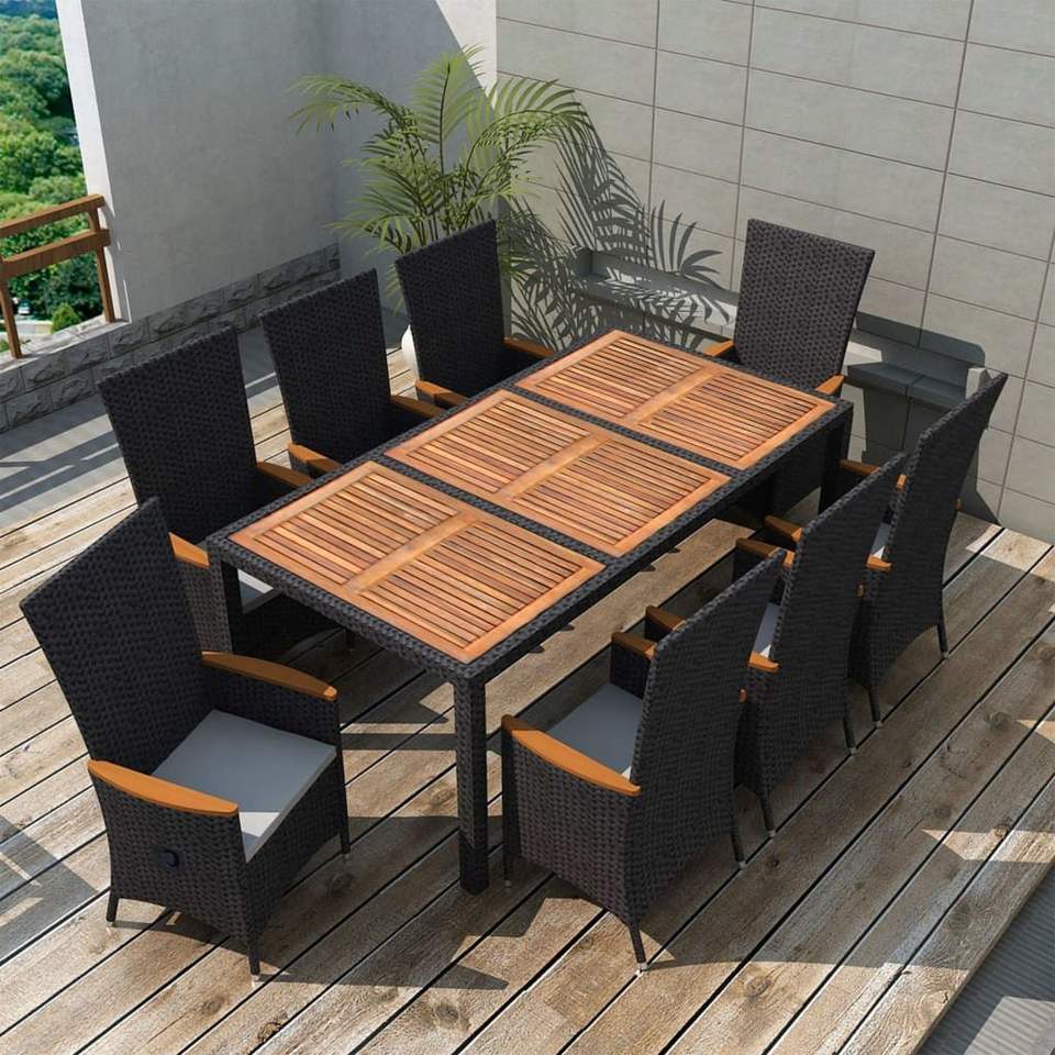 Large Outdoor Dining Set in Black and Cream White PE Rattan Patio Furniture