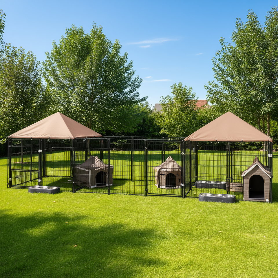 Large Outdoor Dog Kennel 2 Rooms Metal Frame Waterproof Canopy Pet House Furniture Model D0100X3R9FJ