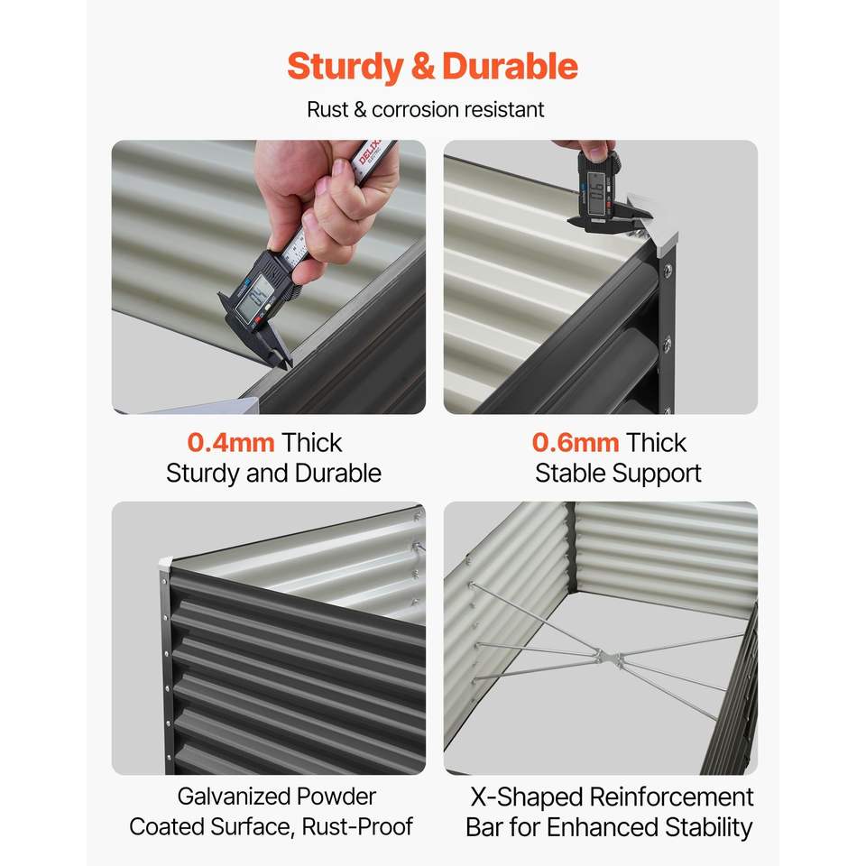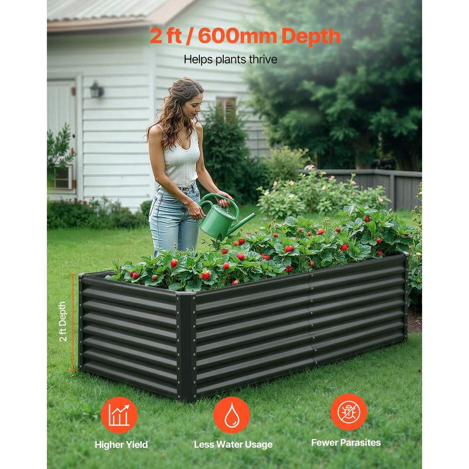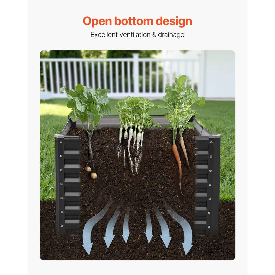 Aiuola Rialzata Grande da Esterno in Metallo Zincato 6 x 3 x 2 piedi con Fondo Aperto - Fioriera da Giardino