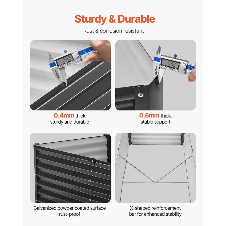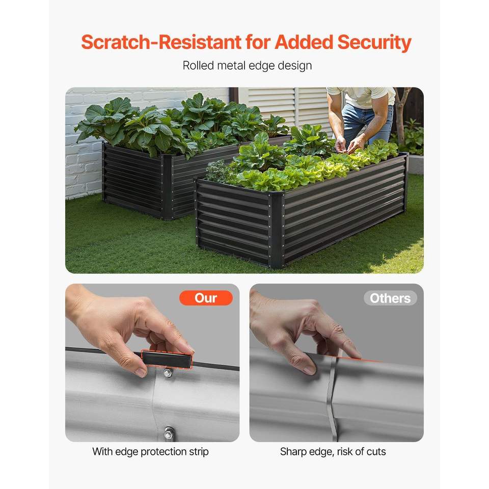 Aiuola Rialzata Grande in Metallo Zincato per Esterni 6 x 3 x 2 piedi, Design a Fondo Aperto per un Giardinaggio Conveniente