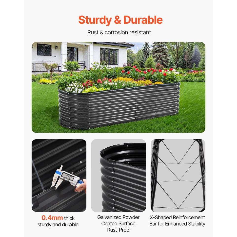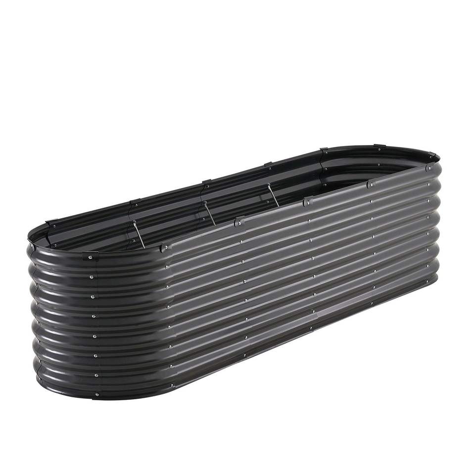 Aiuola Rialzata Grande da Esterno in Metallo Zincato 8 x 2 x 2 piedi, Vaso Ovale con Fondo Aperto per Fiori e Piante