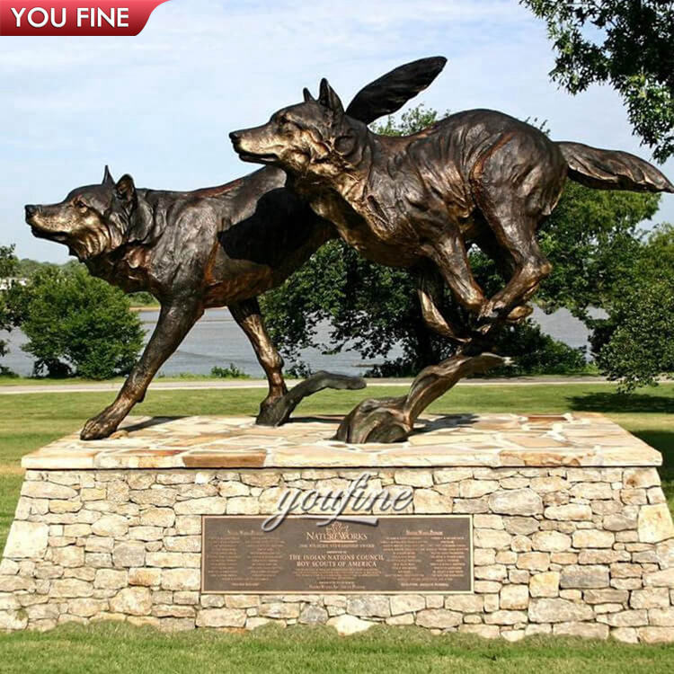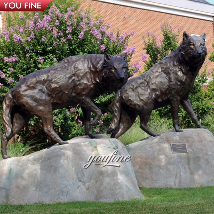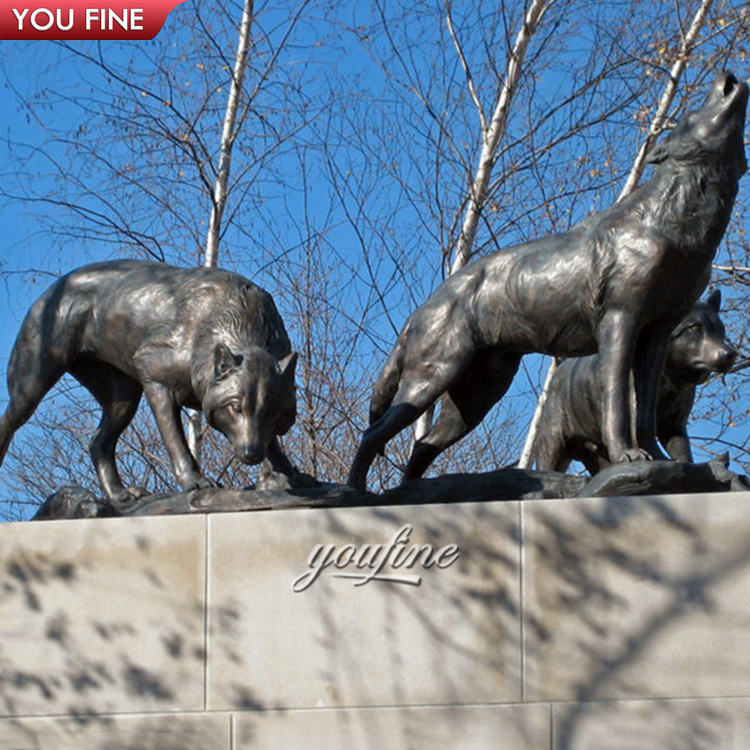 Large Outdoor Life Size Brass Animals Statue Bronze Howling Wolf Sculpture