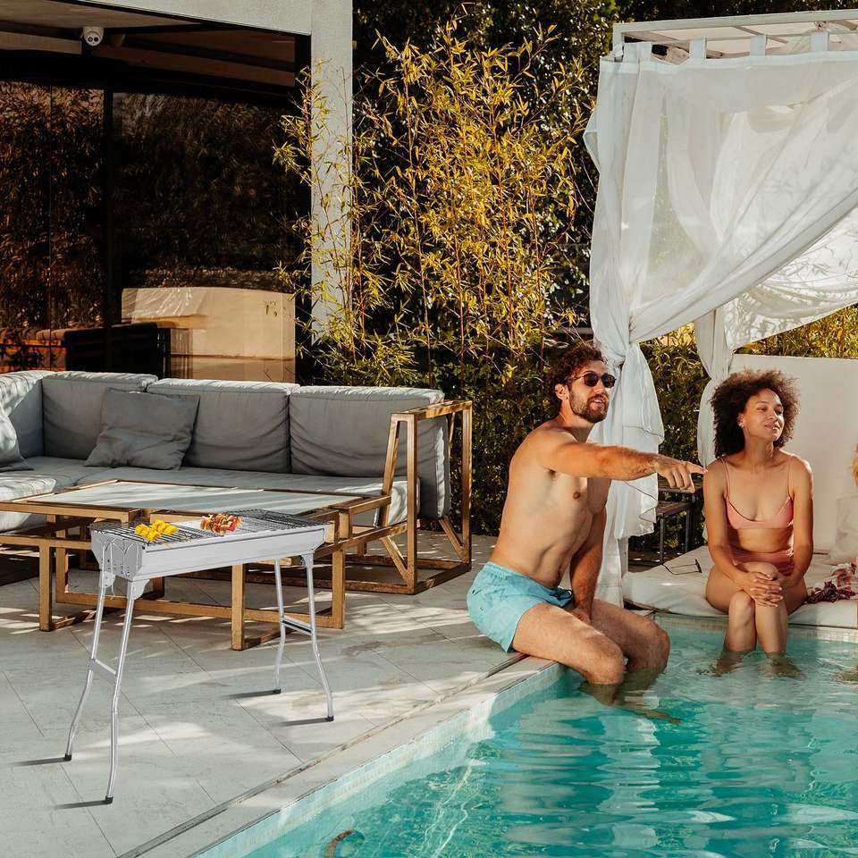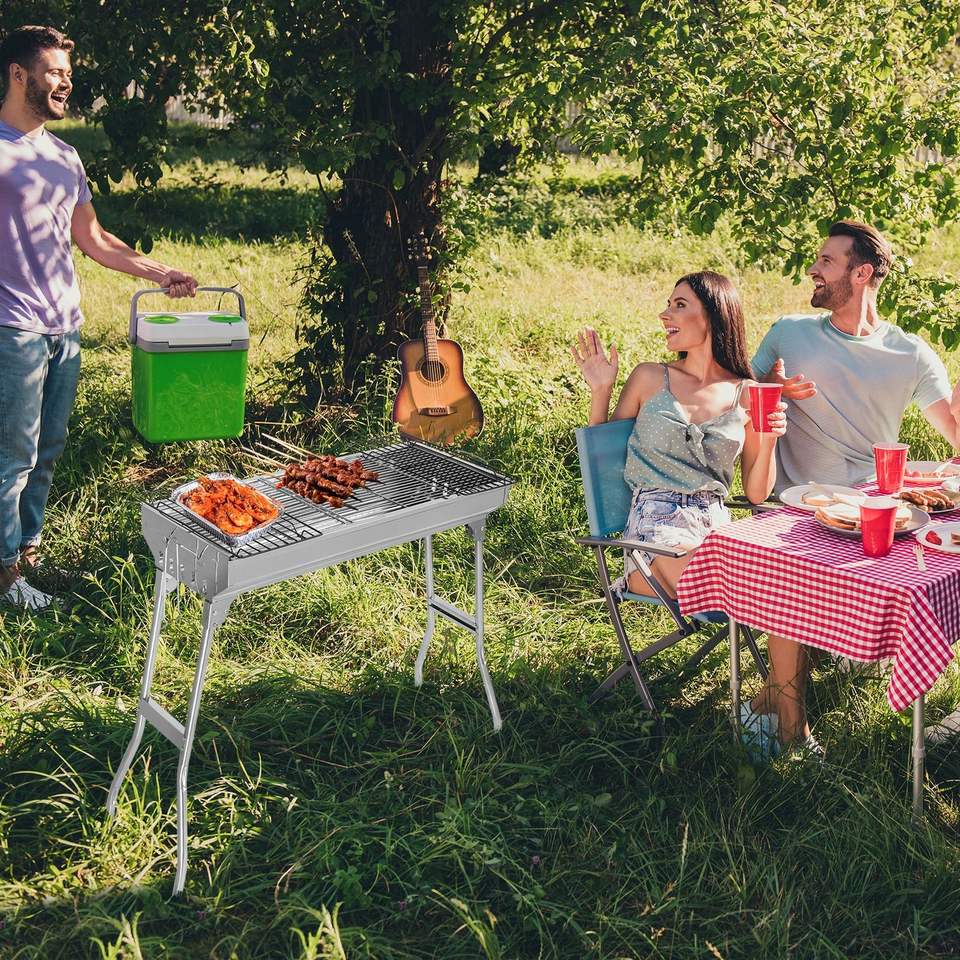 Large Outdoor Stainless Steel Folding Charcoal BBQ Grill Portable Barbecue Cooker for Camping Picnics Backyard Garden Patio Easy