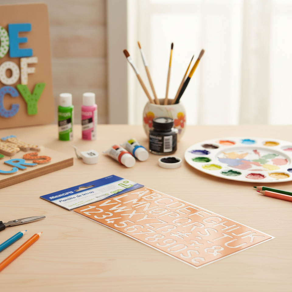 Stencil Alfabetico Grande in Materiale PET Marca Mengfu Modello M-0066 Made in China per Disegno, Artigianato e Progetti Fai-da-Te