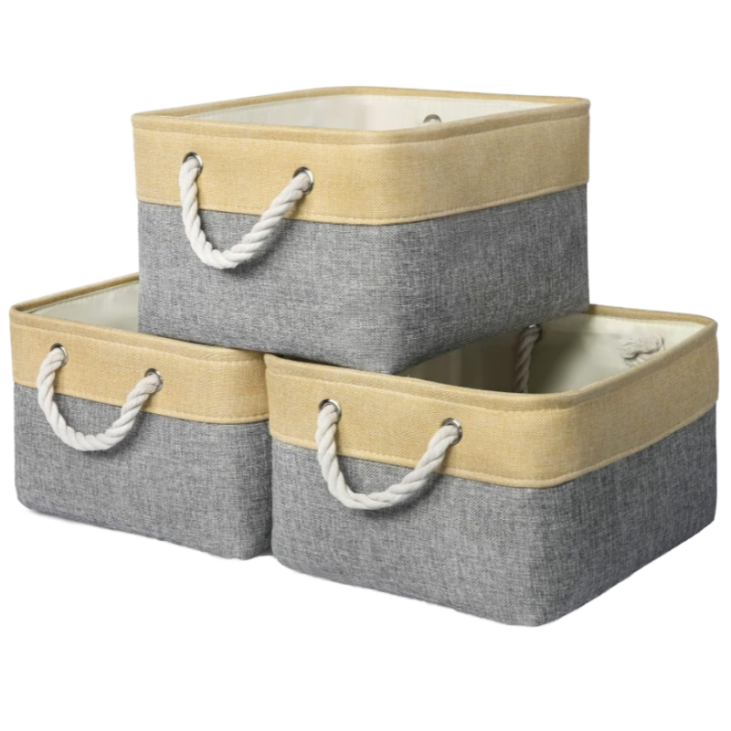 Grande Scatola Portaoggetti Rettangolare in Tessuto di Cotone Design Moderno Pieghevole Contenitore per Giocattoli e Scarpe con Manici per Organizzazione