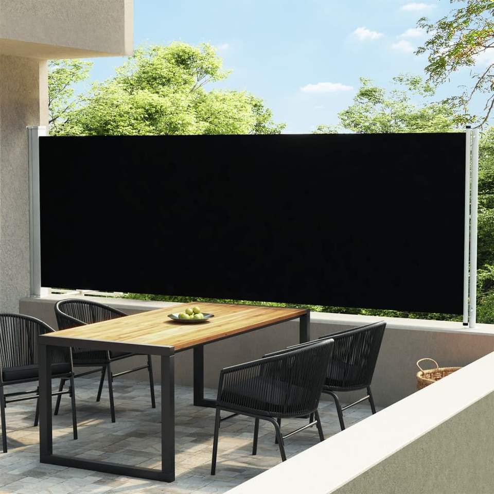 Grande Tenda Laterale Retrattile in Poliestere Nero con Rivestimento in PU