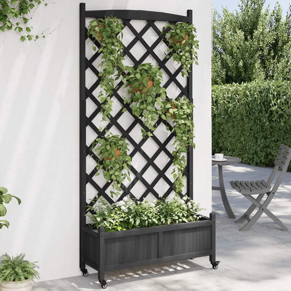 Grande Fioriera Arrotolabile in Legno di Abete Massiccio di Colore Nero - per Vasi e Fioriere