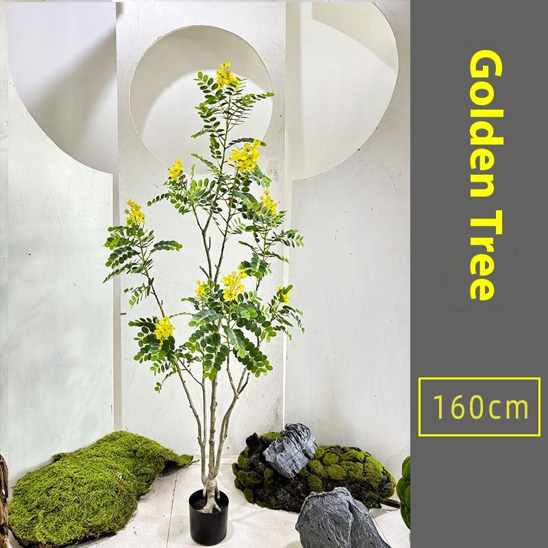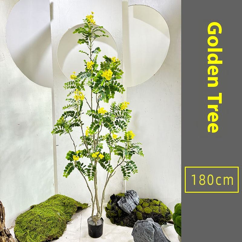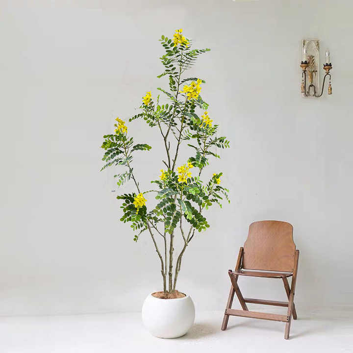 Albero Artificiale a Forma di Pagoda su Larga Scala, Fiore in PVC Morbido Ecologico, Pianta in Vaso Verde e Gialla per Interni/Esterni