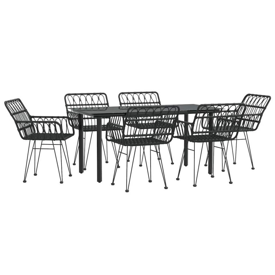 Set da Pranzo da Giardino in Acciaio Nero per 6 Persone, Arredamento Esterno Contemporaneo Resistente alle Intemperie