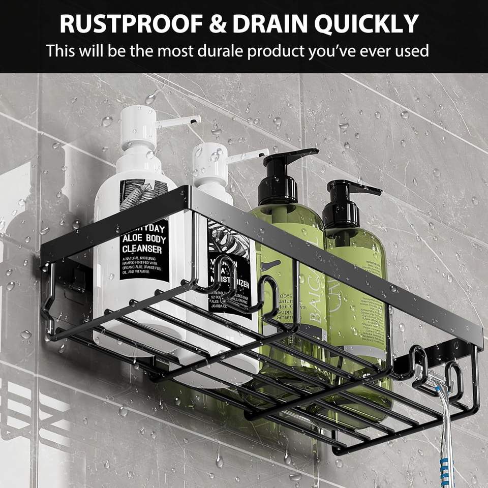 Grande Mensola Portaoggetti Adesiva Nera per Doccia, Organizzatore da Parete Stile Rustico, Cesto Portaoggetti per Bagno