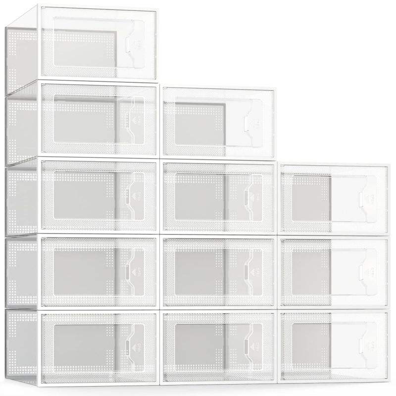 Scatola Portascarpe Grande Organizer per Scarpe Impilabile in Plastica Trasparente per Armadio Scarpiera Pieghevole Salvaspazio