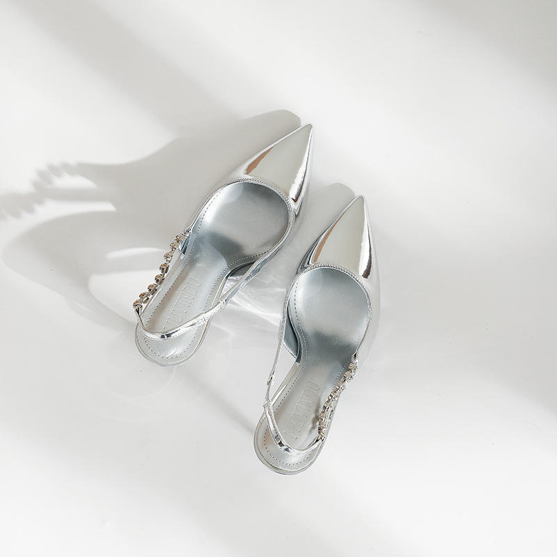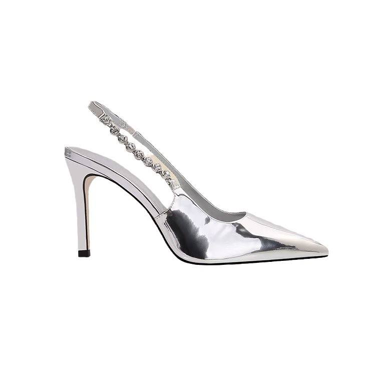 Large Size 43 Summer High Heels 8 cm Slim Heel Silver Sexy Sandals Hot Selling Outdoor Women's Shoes