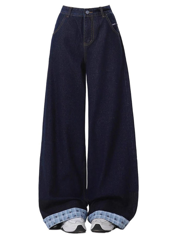 Di grandi dimensioni paffuta da ragazza stile americano retrò blu scuro Jeans da donna estate traspirante pantaloni larghi vita alta