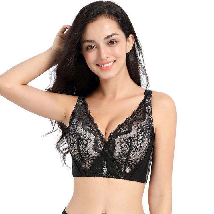 Reggiseno a Coppa Grande con Bottoni Frontali, Senza Ferretto, Effetto Push-up, Intimo Invisibile in Pizzo