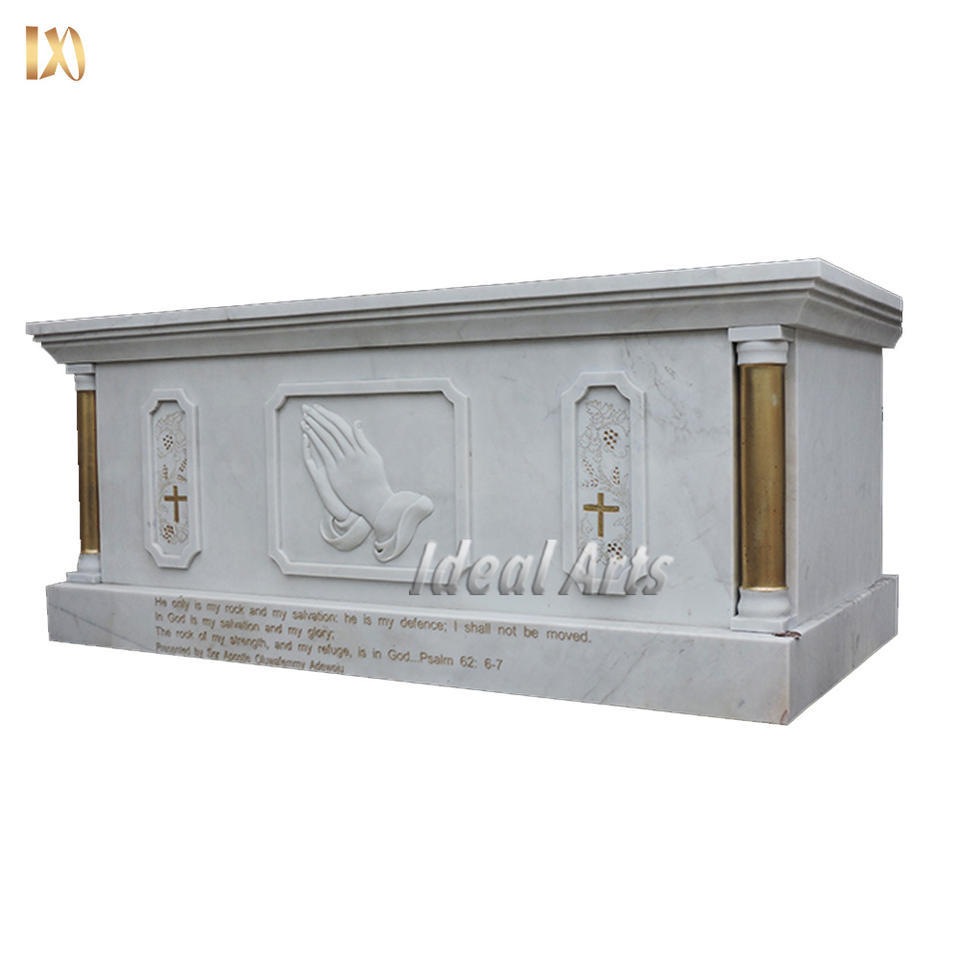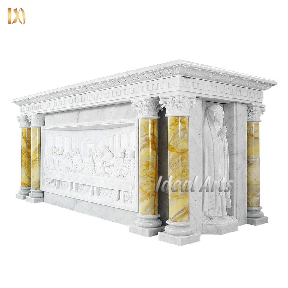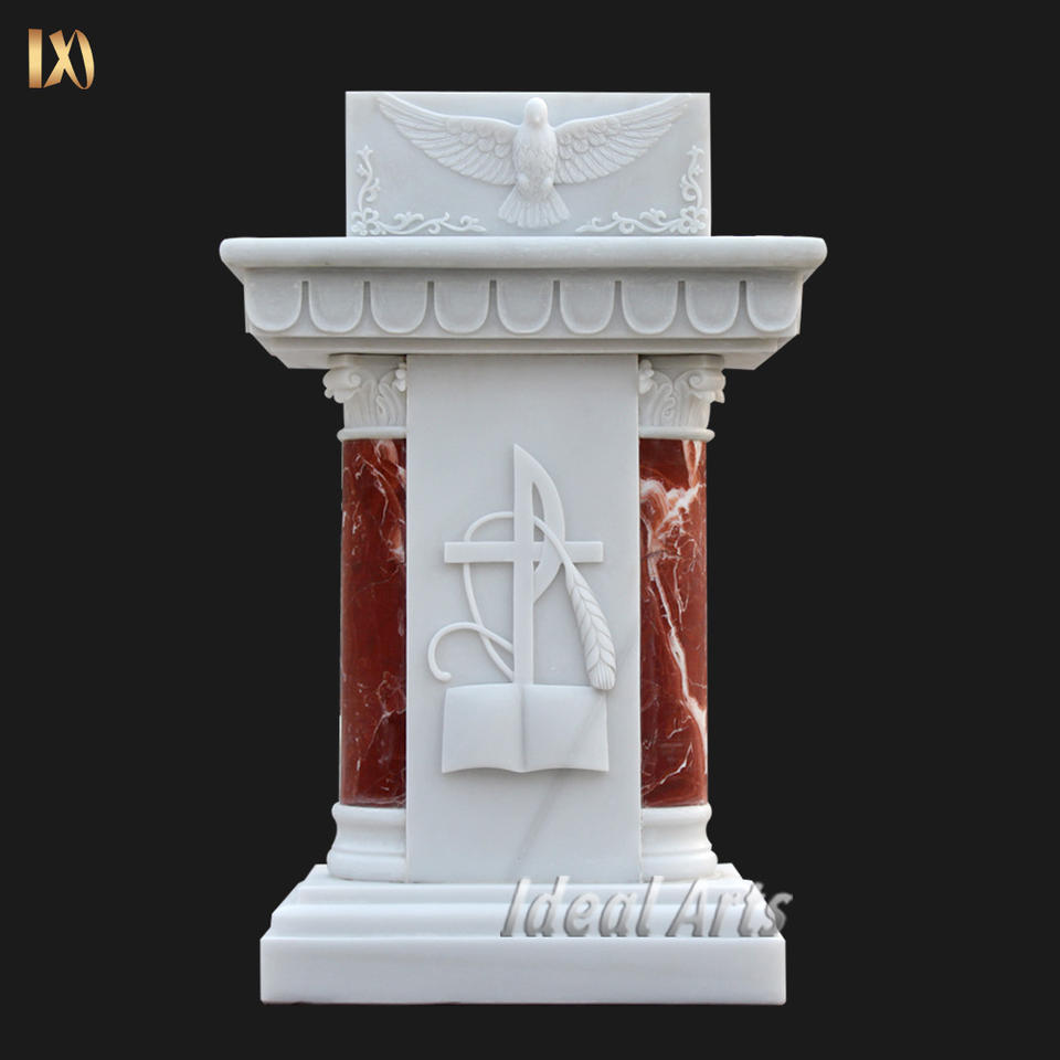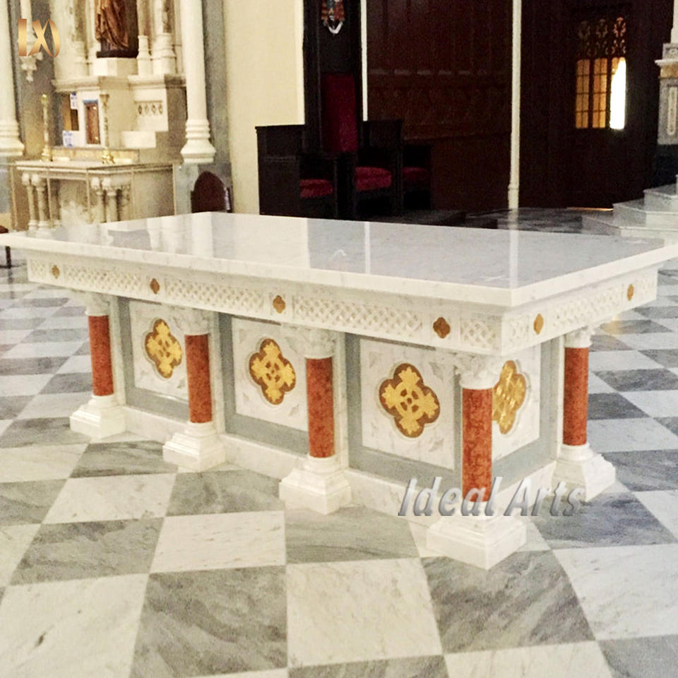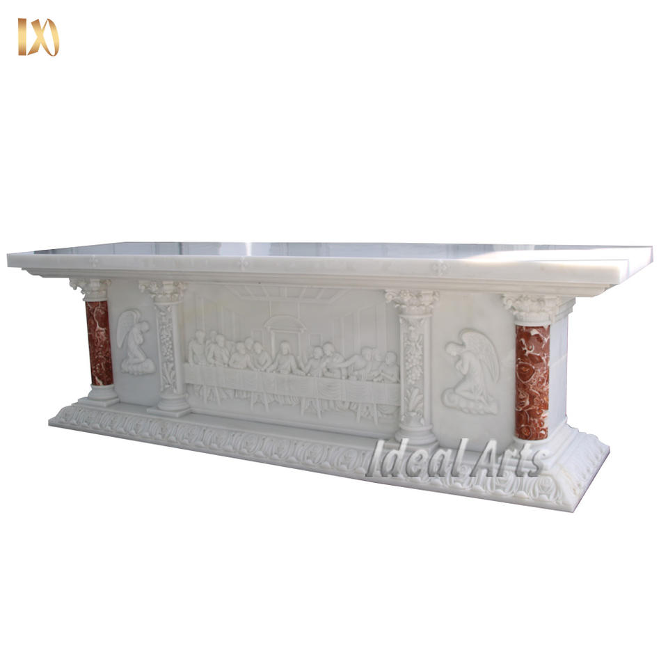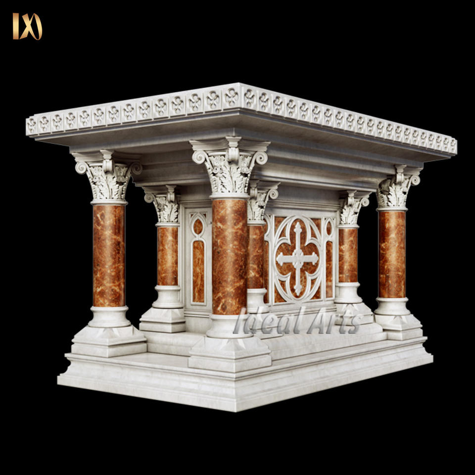Altare da Chiesa Grande in Marmo Bianco e Rosso Intagliato a Mano con Colonna, Stile Moderno