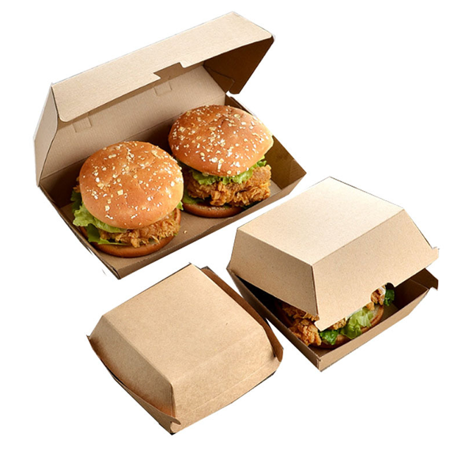 Scatola per Hamburger personalizzata Kraft di carta per Hamburger di pollo fritto con Snack marrone stampato di grandi dimensioni