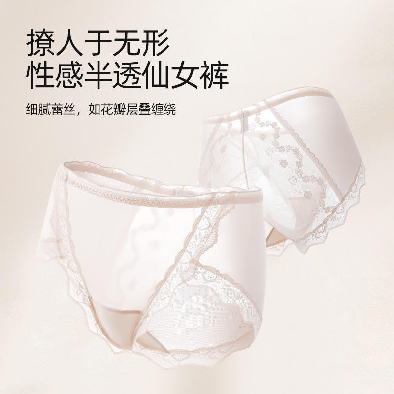 Slip Bikini in Raso e Pizzo a Vita Media per Uso Quotidiano, Taglia Grande per Donne fino a 100kg, Mutandine Sexy Senza Cuciture con Spacco Alto