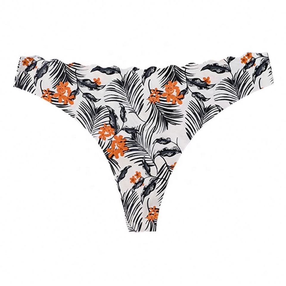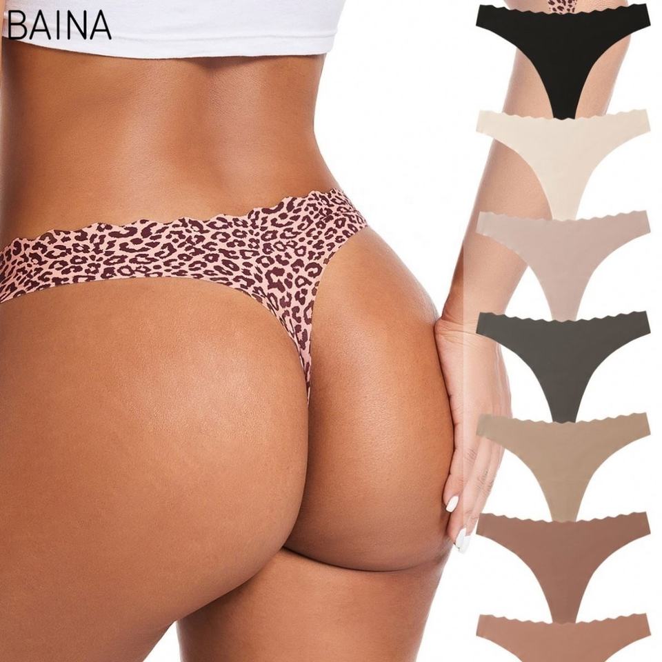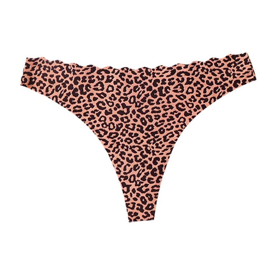 Large Size Women's Seamless Ice Silk Sports Panties Low-Rise Leopard Thong with Logo Waist Sexy Style Breathable Knitted Design