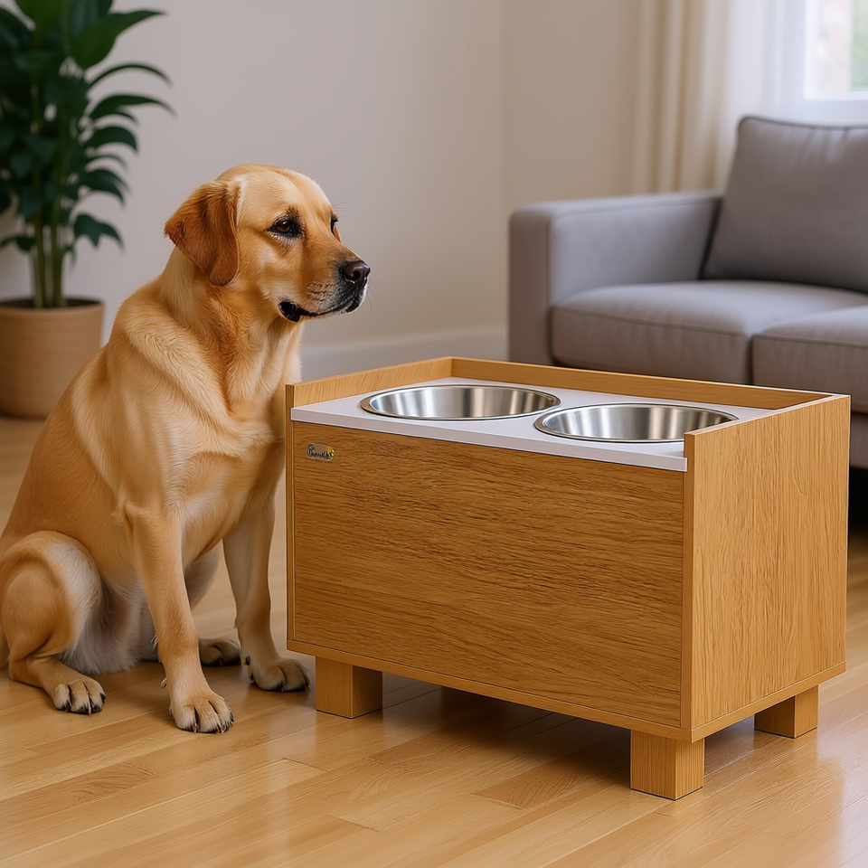 Elevated Slow Feeder Stainless Steel Pet Bowls Rectangular Modern Design for Large Dogs Indoor Use