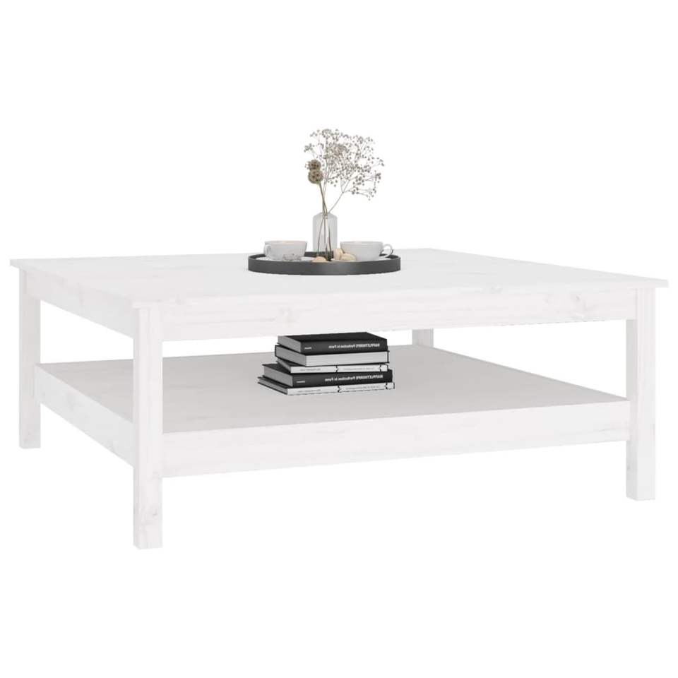 Grande Tavolino da Caffè Quadrato in Legno di Pino Bianco Massiccio
