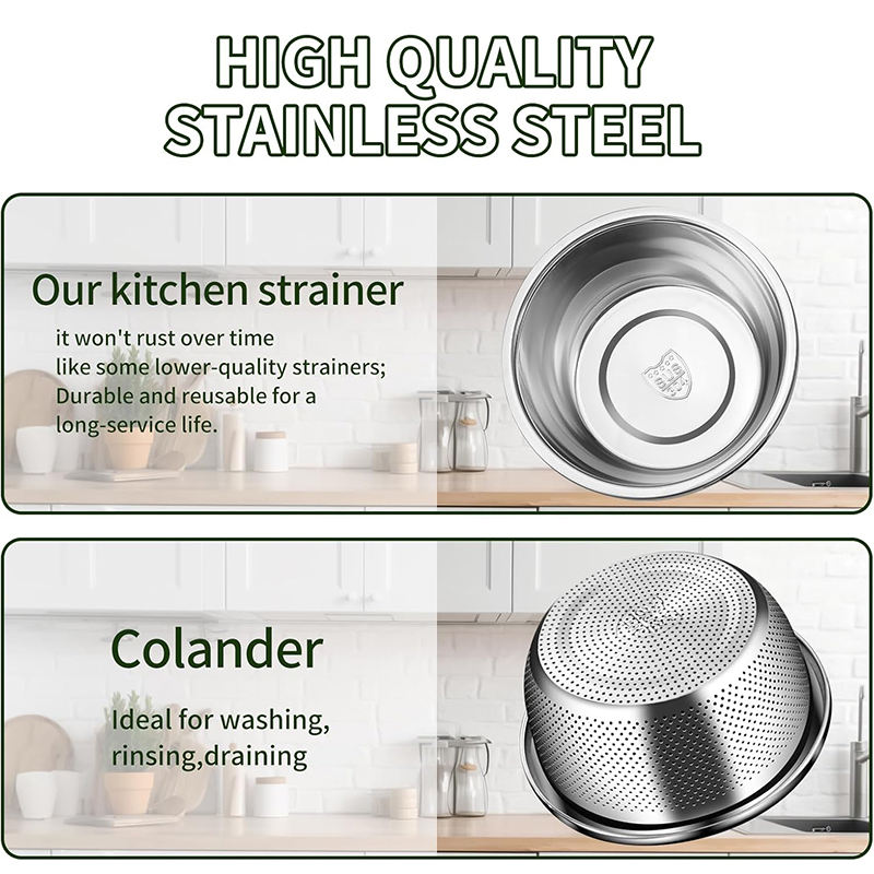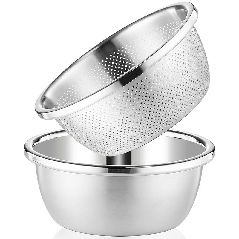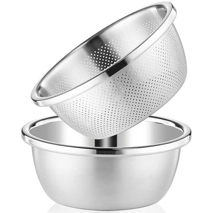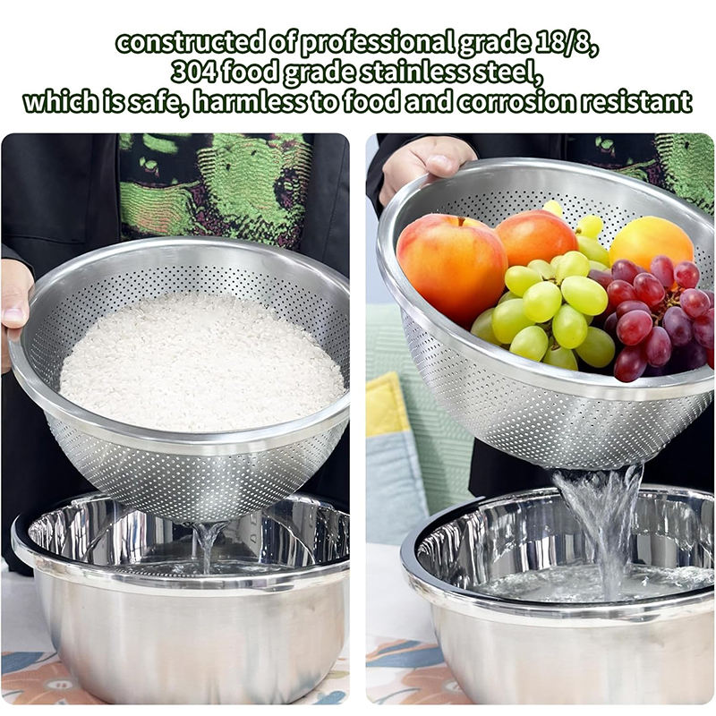 Grande Ciotola Rotonda in Acciaio Inox con Set di Ciotole per Mescolare e Colini per Verdure, Frutta e Impasti