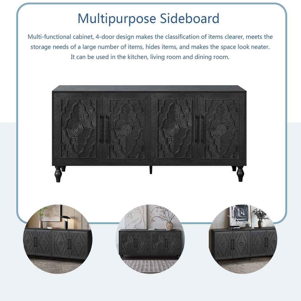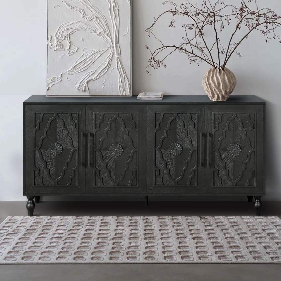 Grande Armadio con Design Floreale Intagliato e Maniglia in Metallo per Soggiorno, Cucina o Ingresso - NERO