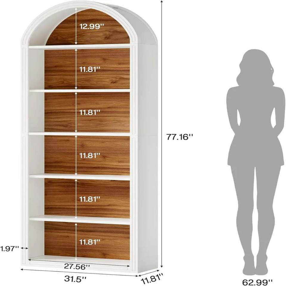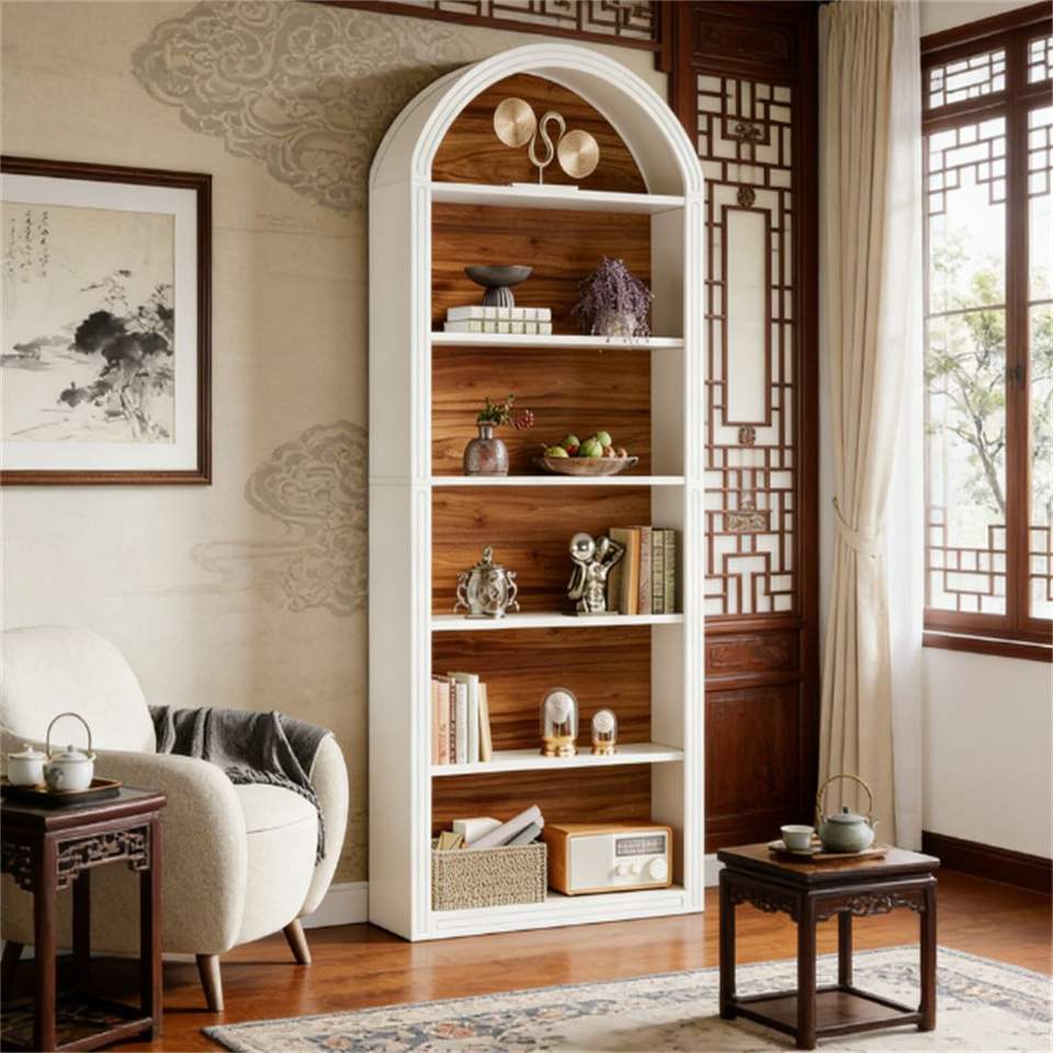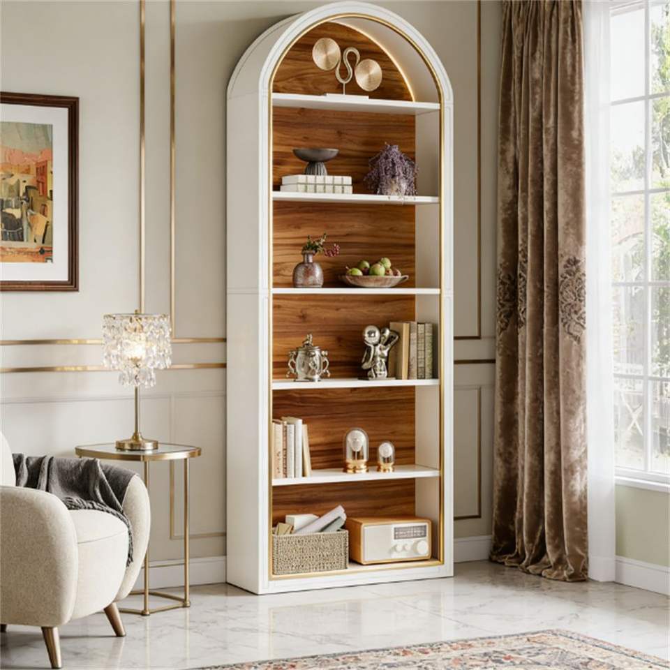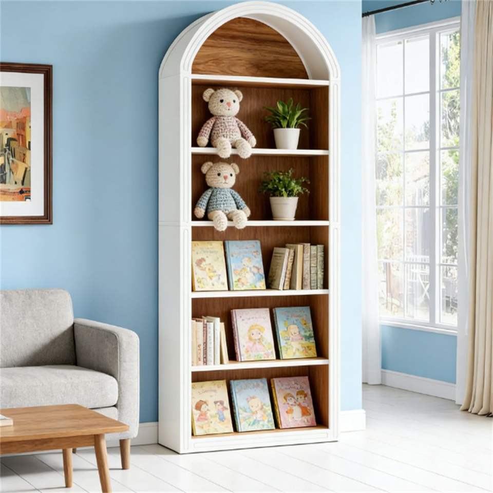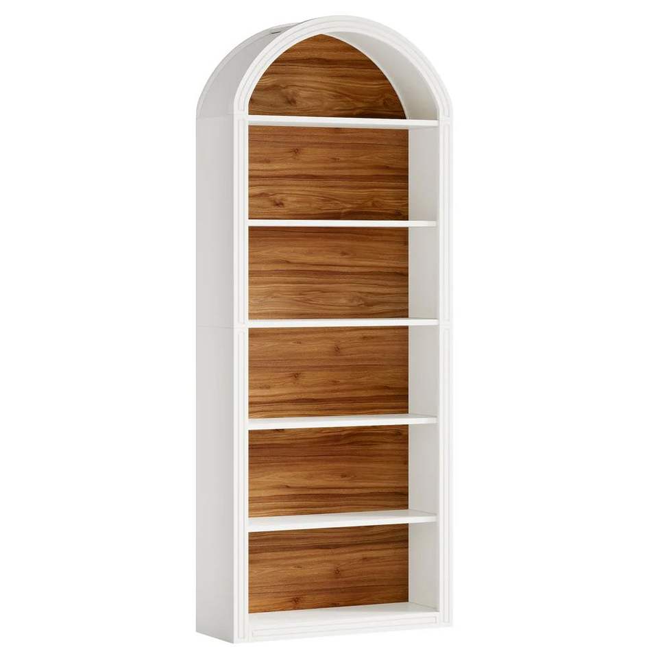Libreria ad arco in legno con ampio spazio contenitivo e scaffale espositivo, libreria alta