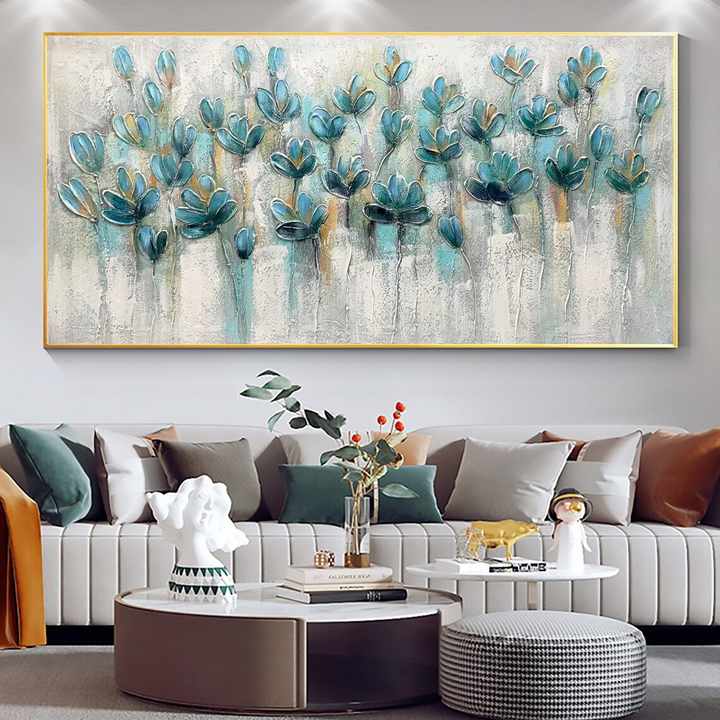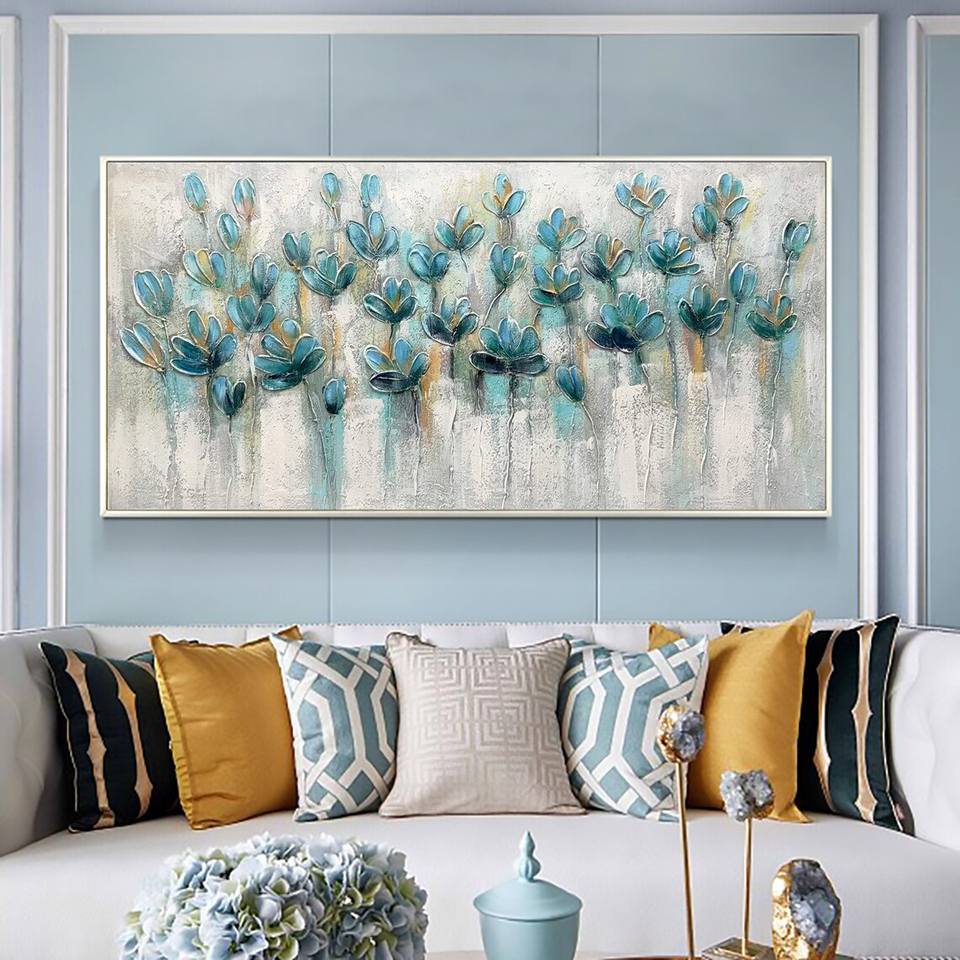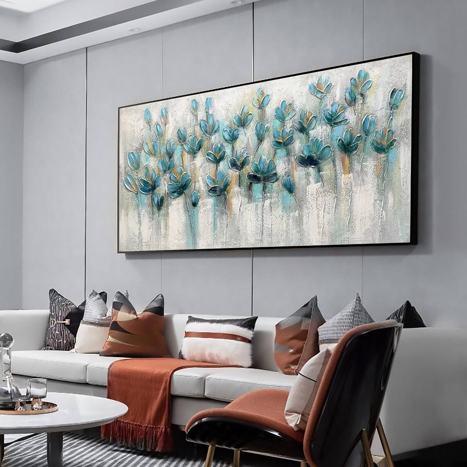 Grande paesaggio strutturato pittura acrilica astratta Teal Blossom pittura a olio su tela Wall Art Home Living Room Wall Decor